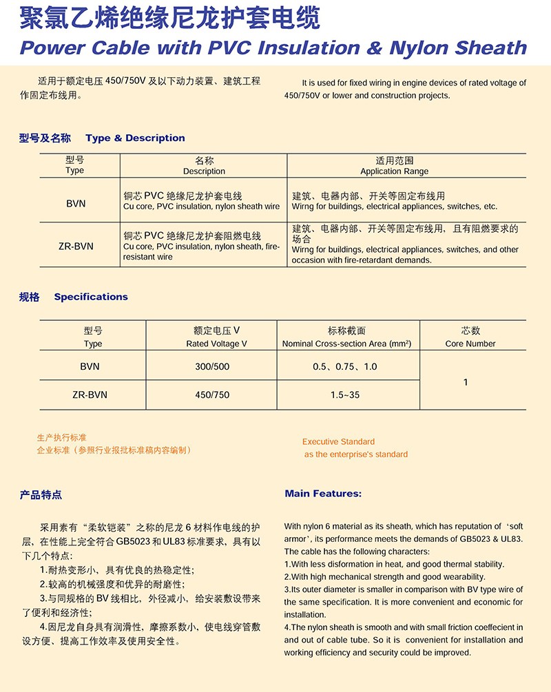 聚氯乙烯絕緣尼龍護套電纜的產品詳細介紹: